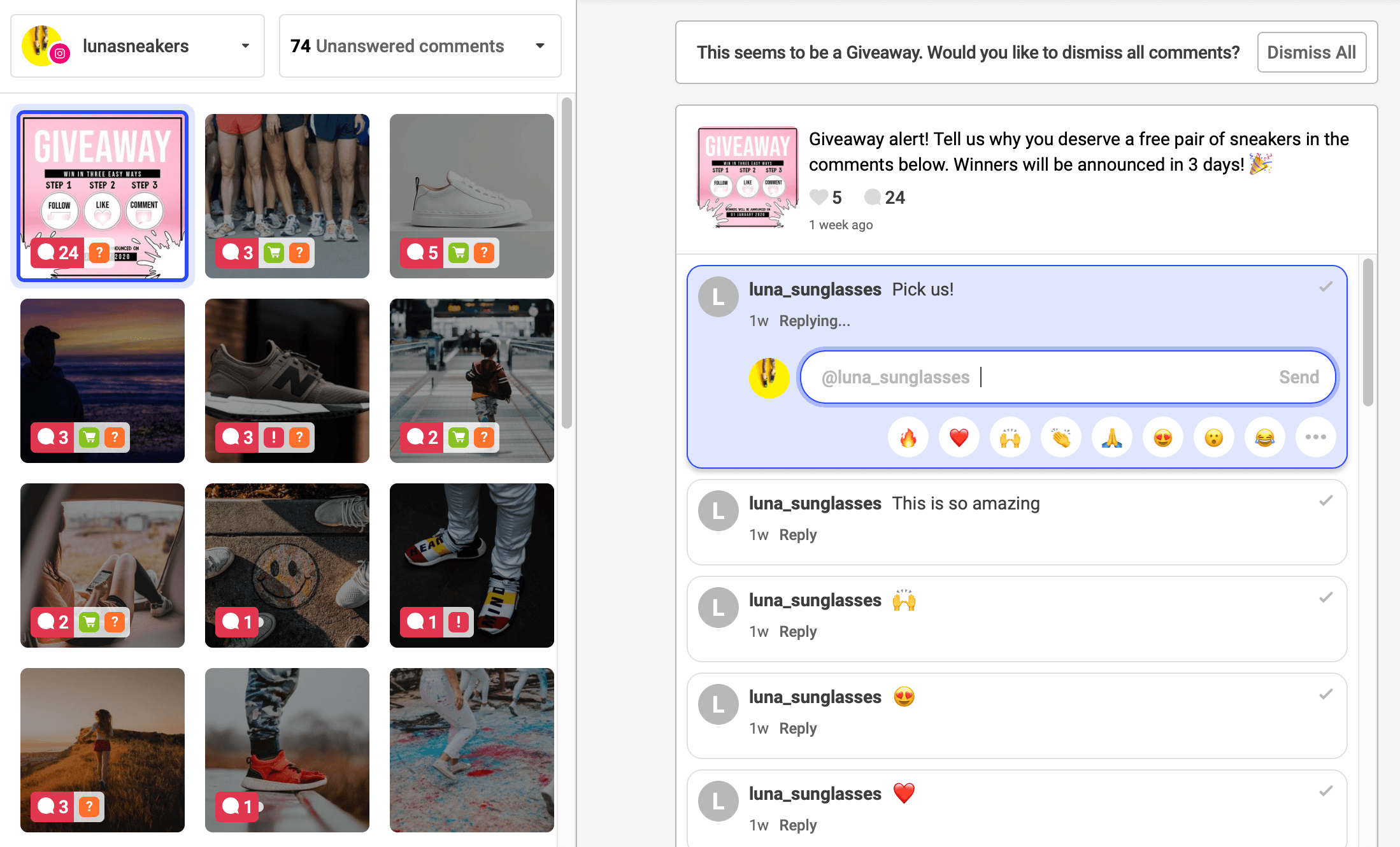 Retail business Sass & Belle uses this tool to respond to its comments in a timely manner: