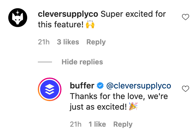 And here at Buffer, we have an engagement tool to help you stay on top of important interactions on Instagram and Facebook and turn followers into fans.