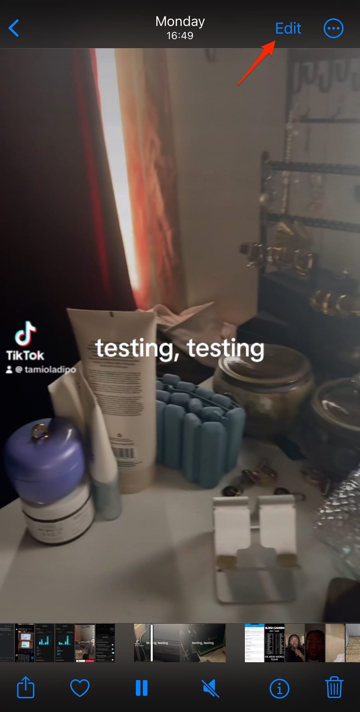 Step 2: Go to your phone’s Gallery and open the video you want to crop, then tap Edit from the top right corner.