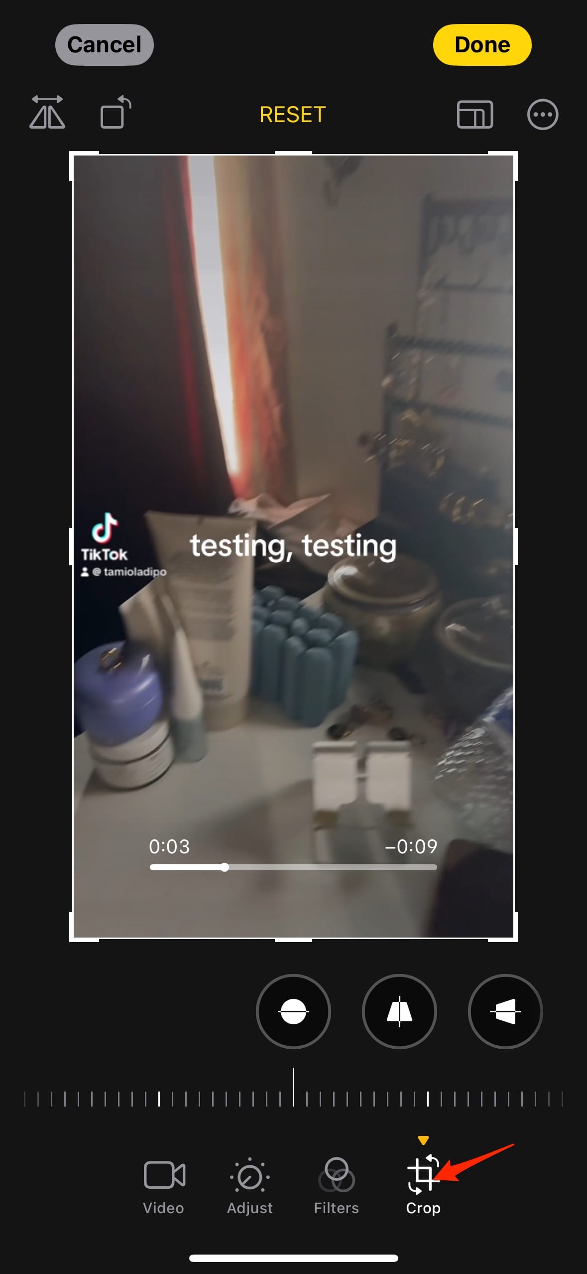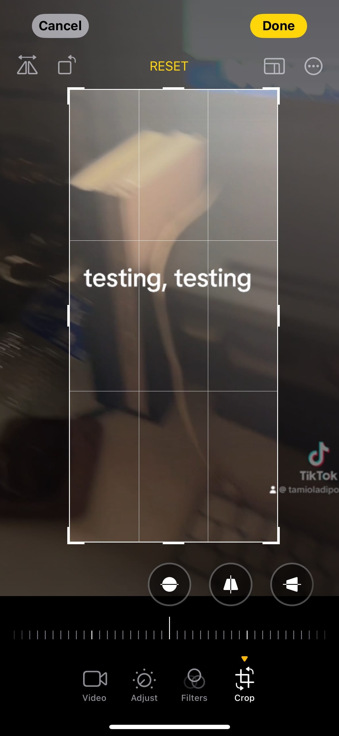 There are two ways you can use editing magic to solve this challenge. One is by cropping your video, a simple but imperfect method for removing your TikTok watermark. To do this, you zoom into your video until the area around the watermark disappears – here’s how (as an iPhone user):