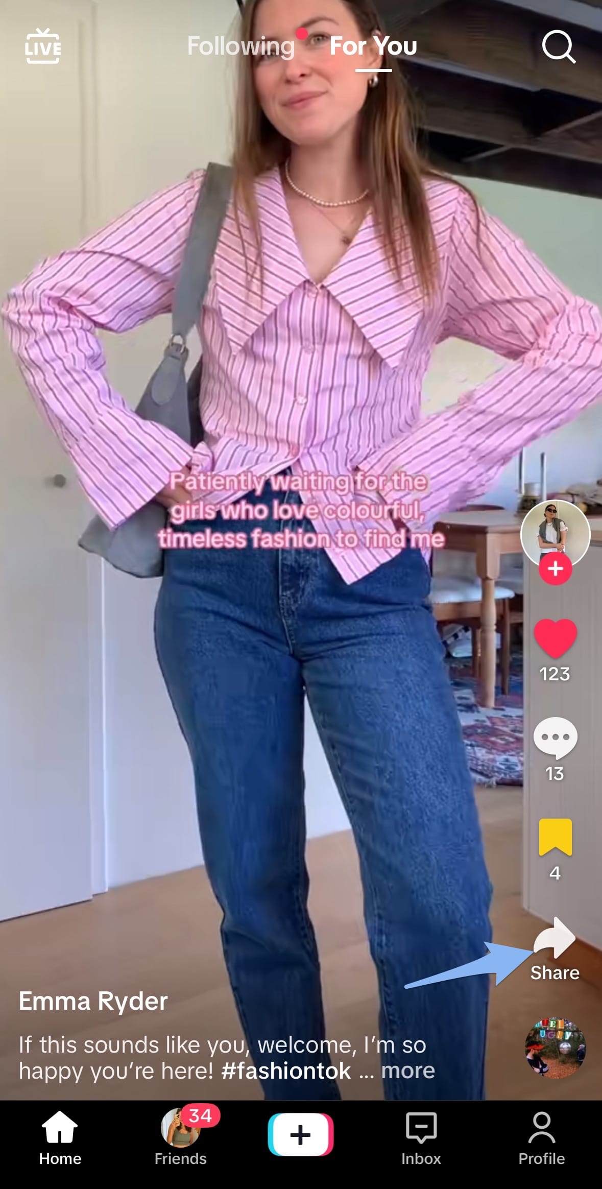 Step 2: Navigate to the video you want to download, then tap the Share button at the bottom right.