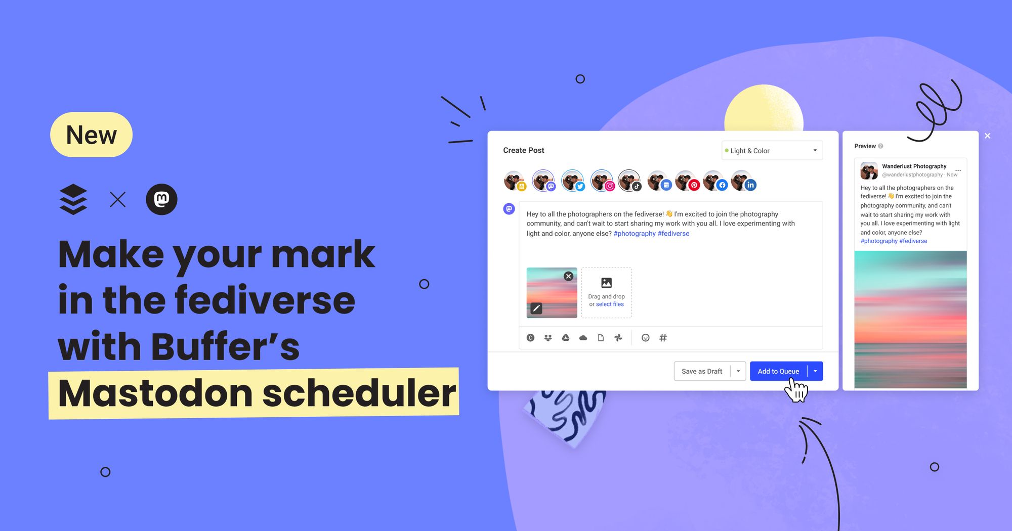 Today we are rolling out support for Mastodon scheduling within Buffer. The Mastodon community is growing fast. We’re excited to explore it with you and help you build a consistent and engaging Mastodon presence.