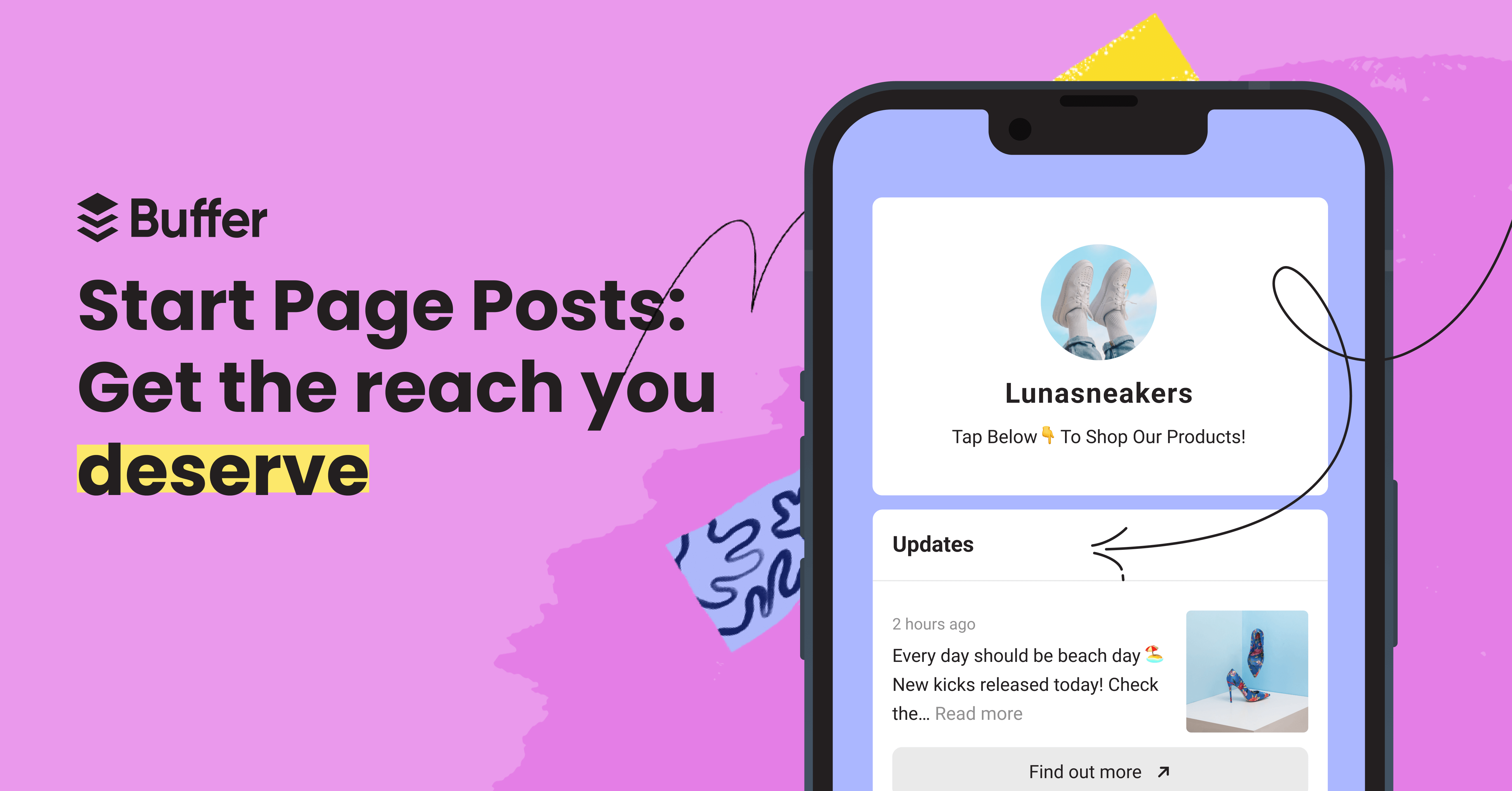 Schedule new updates to appear on your Start Page to beat the algorithm and get the reach you deserve (oh and it’s included for free!).